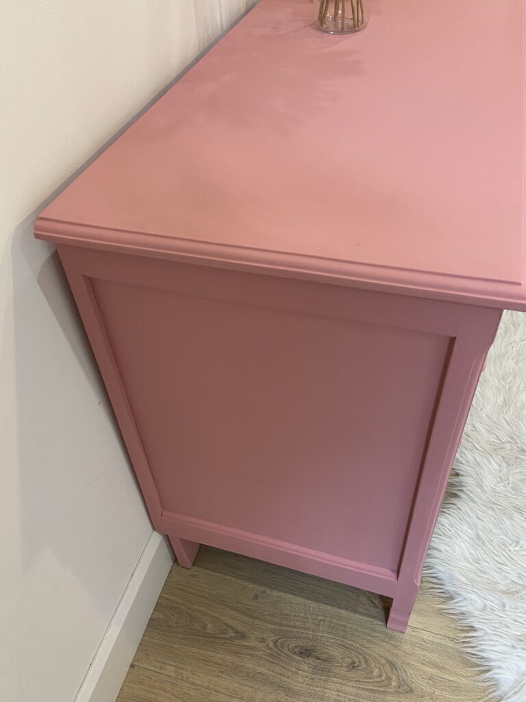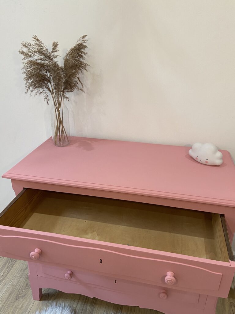 Een leuke roze ladekast, ideaal voor een baby/kinderkamer.